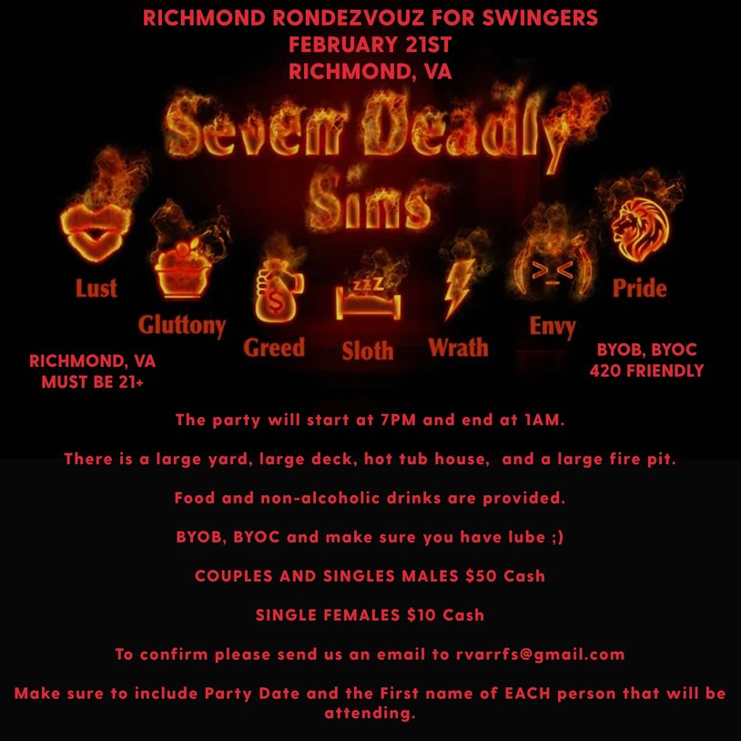 By attending this event you agree to Absolutely No violence, NO weapons, No drama, No Negativity, No Body Shaming, No Recording without permission, and No soliciting or prostitution allowed. The host reserves the right to admit or dismiss participants as deem necessary. You affirm that you are a willing and consenting adult of at least 21 years of age. You affirm that you have not received any type of payment for any sexual acts. You are aware that this is a private membership function, and you may encounter nudity and sexual acts. You will not violate or break any local/Federal laws or policies, or hold the host liable for any harm cause while attending this event of your own free will made with sound mind and judgment. Remember that NO MEANS NO..